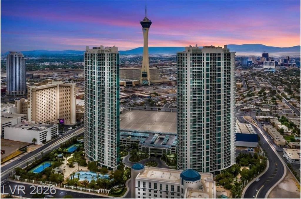 Welcome to Turnberry Towers?luxury high-rise living just one block from the Strip. This stunning residence offers breathtaking, ever-changing views that feel like artwork. Features include granite countertops, Snaiderro Italian cabinetry, and a dramatic floor-to-ceiling glass wall that opens seamlessly to the terrace, showcasing sweeping south-Strip vistas. The primary suite includes a large walk-in closet, jacuzzi jetted tub, and abundant storage, plus an additional on-site storage unit. Enjoy 5-star amenities including valet, concierge, a state-of-the-art fitness center, resort-style pool and spa, EV charging stations, assigned parking, and more.